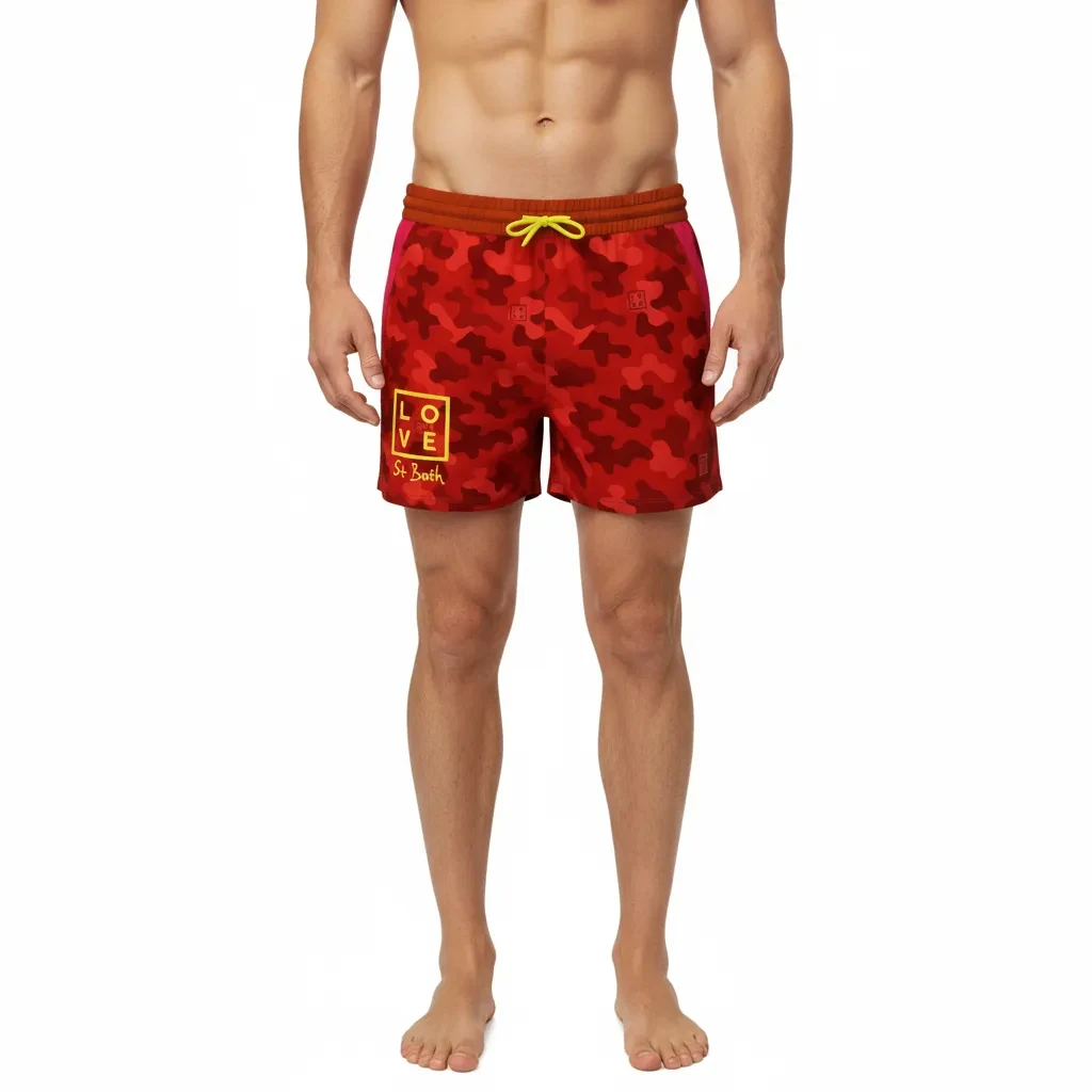 The bold, tropical print proudly showcases the LOVE logo and Saint-Barth signature – perfect for beach days filled with fun and memories.